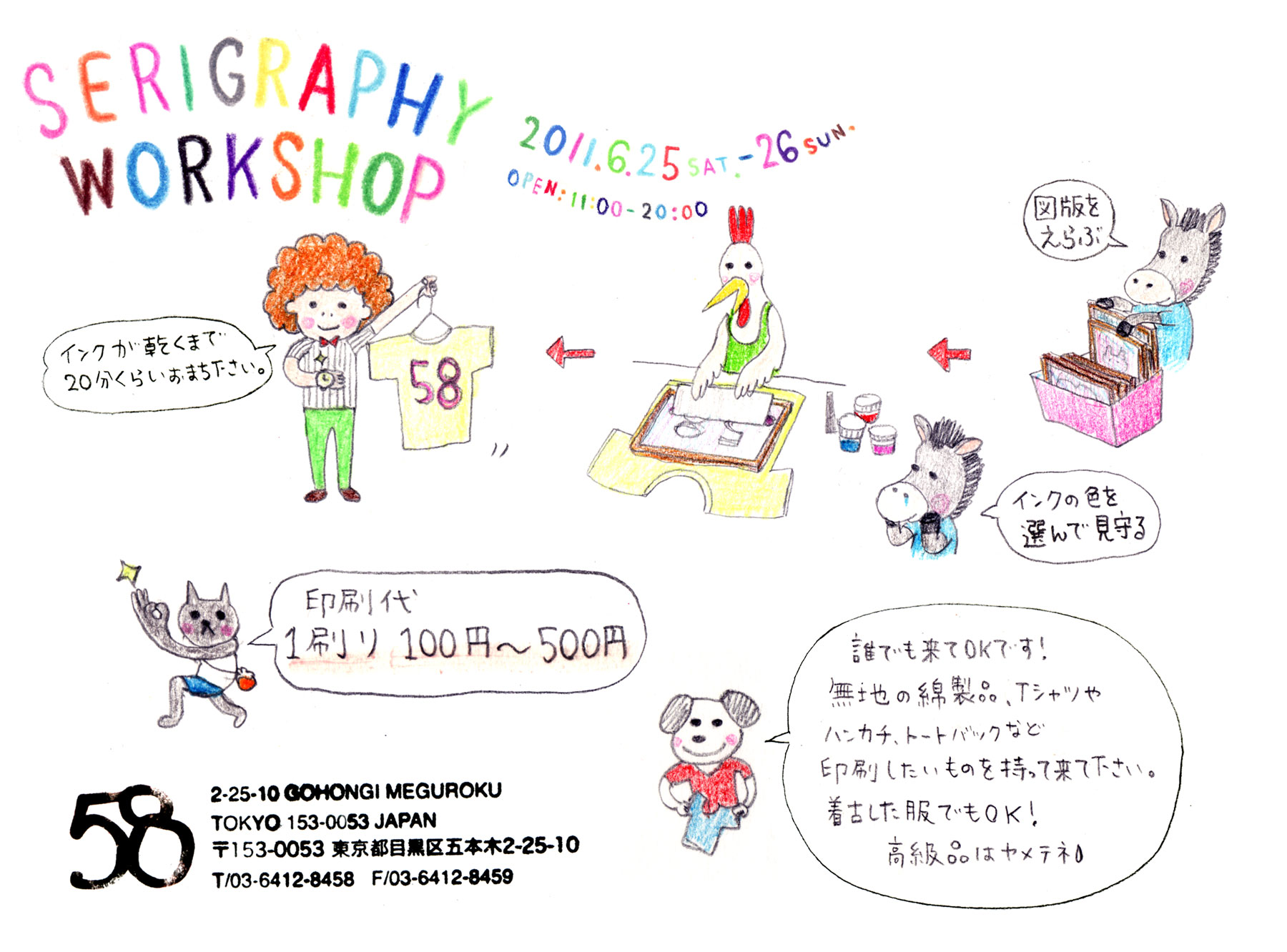 5/24はシルクスクリーンのプリントワークショップを行います!