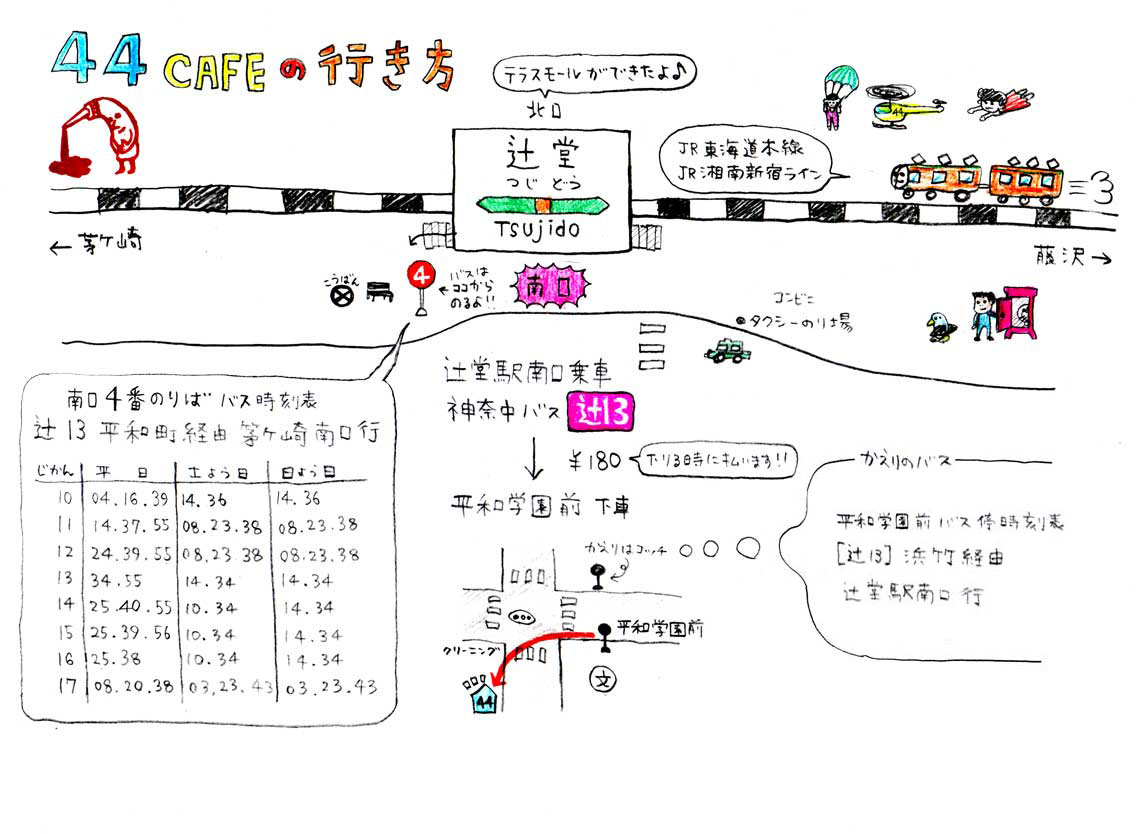 辻堂駅から44CAFEへのバスの時刻表